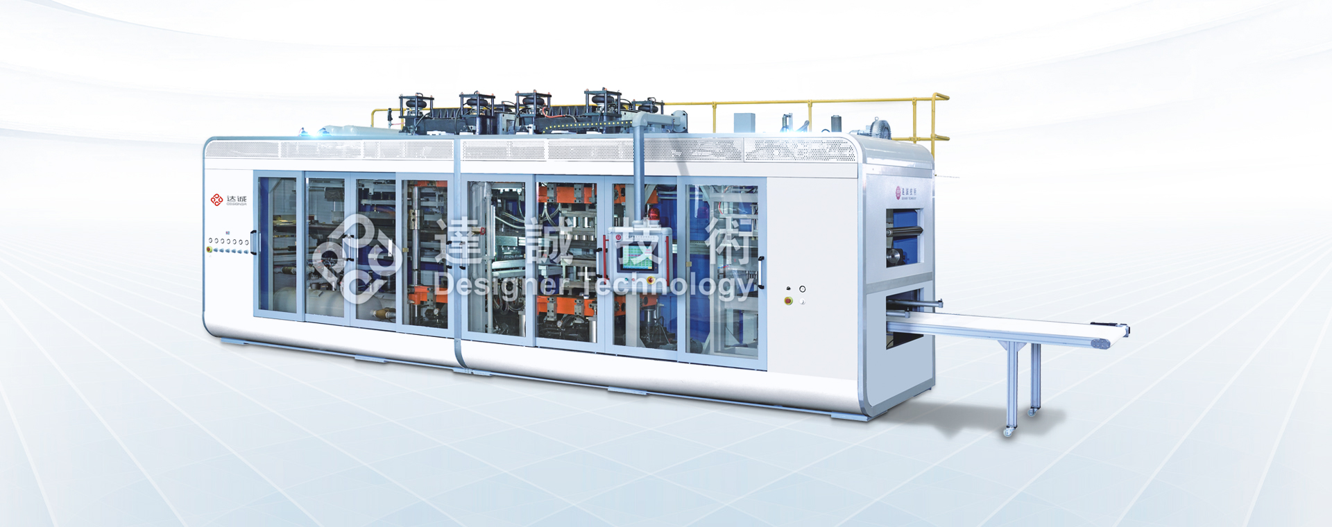 成型工位、沖孔工位、沖剪工位采用上下兩組伺服電機(jī)控制,驅(qū)動偏心輪連桿結(jié)構(gòu)分別帶動兩模臺上下運(yùn)動并配備正負(fù)壓氣源,可實現(xiàn)產(chǎn)品正負(fù)壓成型。